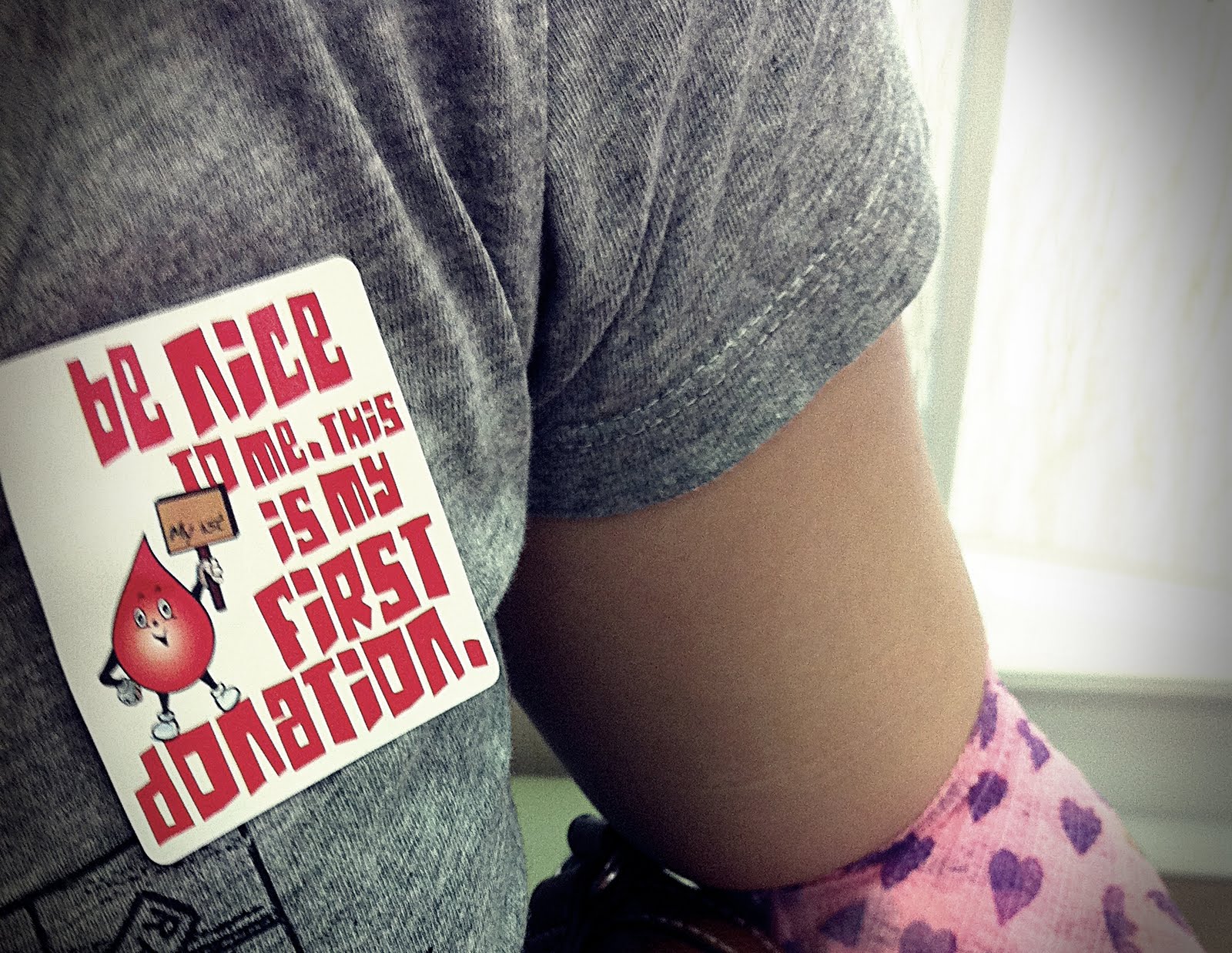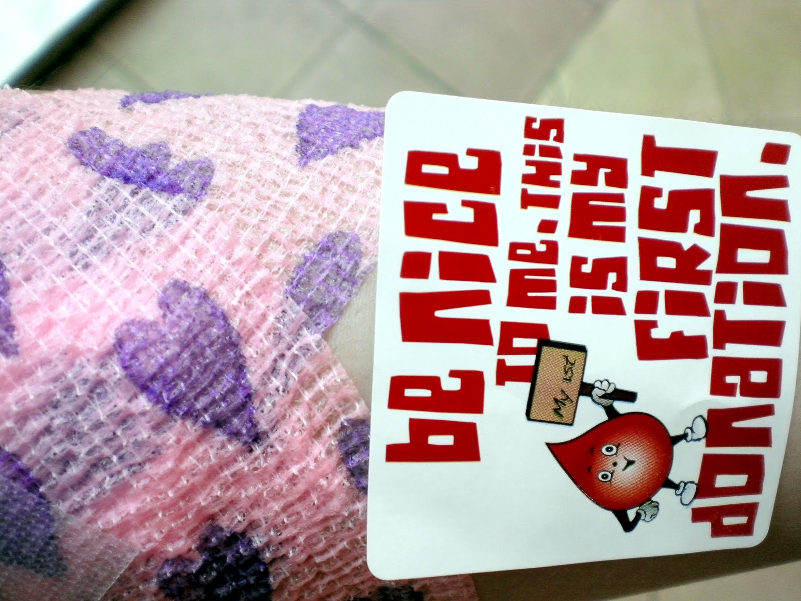 She chose a pink bandage with purple heart shapes which would brighten her up and perk her red blood cell count when she sees her favourite colour.