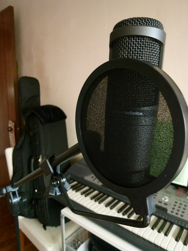 | I had a keyboard,guitar,violin and ukulele behind this microphone set-up. |