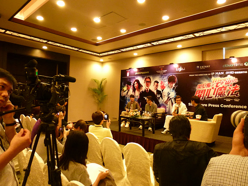 The other bloggers and myself came in at the right time when Wu Chun, Raymond Lim and the movie director Wilson Yip (叶伟信) just entered and walked up the stage. When I first stepped into the ballroom, I was surprise to see so many female reporters seated behind. Are they camera-shy or what? Well, I guess it’s a good opportunity for us bloggers as Hayley,Claire and I hurriedly went along to occupy the front seats.