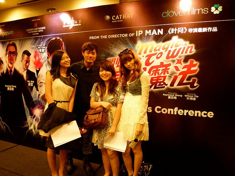 Anyhow, my task was to blog about the press conference on the new and upcoming movie, Magic To Win which starred Wu Chun (吳尊, Wú Zūn) , Raymond Wong( 黄百鸣), Louis Khoo (古天乐), Wu Jing (吳京)and Karena Ng ( a new Hong Kong Actress). Upon entering, I was given a “Fanclub sticker” and had to label myself as a “fan” which I thought was pretty hilarious given that fact that I wasn’t a fan of this movie. Maybe someday they would have media passes or stickers for bloggers too.