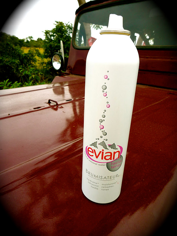 | Evian facial spray to keep us refresh. But with our faces so damp, would our faces get coated with more sand? |