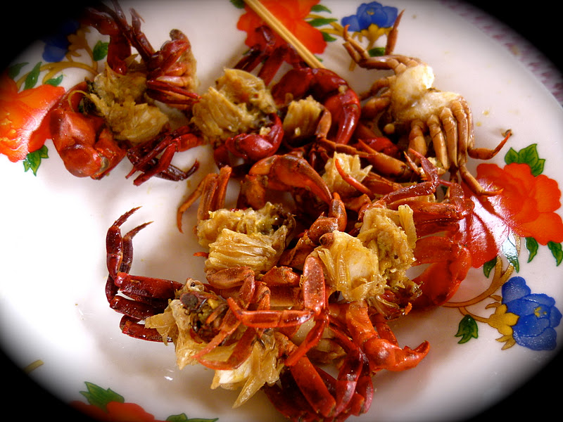 We had our lunch by the riverside, munching on some snails, mini crabs and sandwiches.
