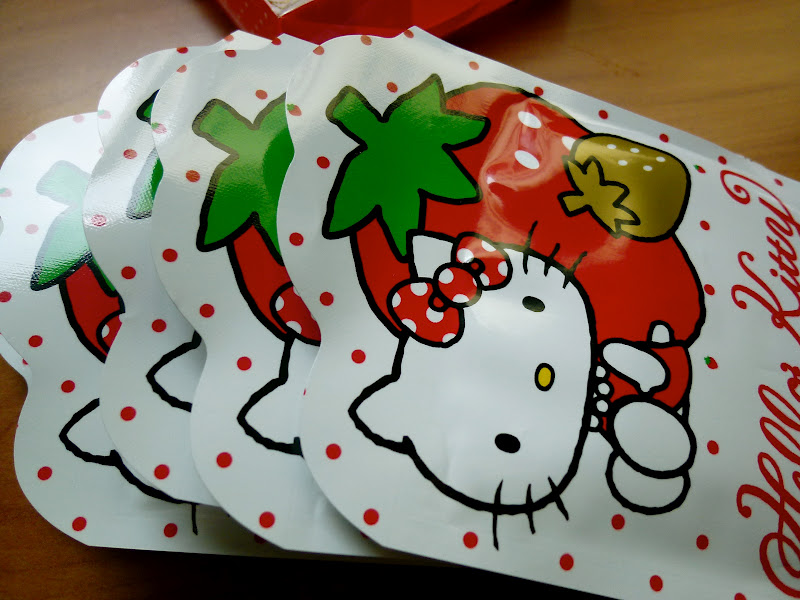 | 5 Lovely packets of Hello Kitty Strawberry masks in a box This could be a perfect gift for your girlfriends who adore Hello Kitty. |