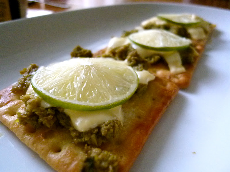 Spread some butter evenly on a cracker. Then scoop up a teaspoon of Olive verte and spread it on the buttered crackers.  Sprinkle strips of cheese over it and top it up with thinly-sliced lemons. Drizzle some lemon juice over and toast the crackers in the oven for 3 mins. It’s ready to be served.