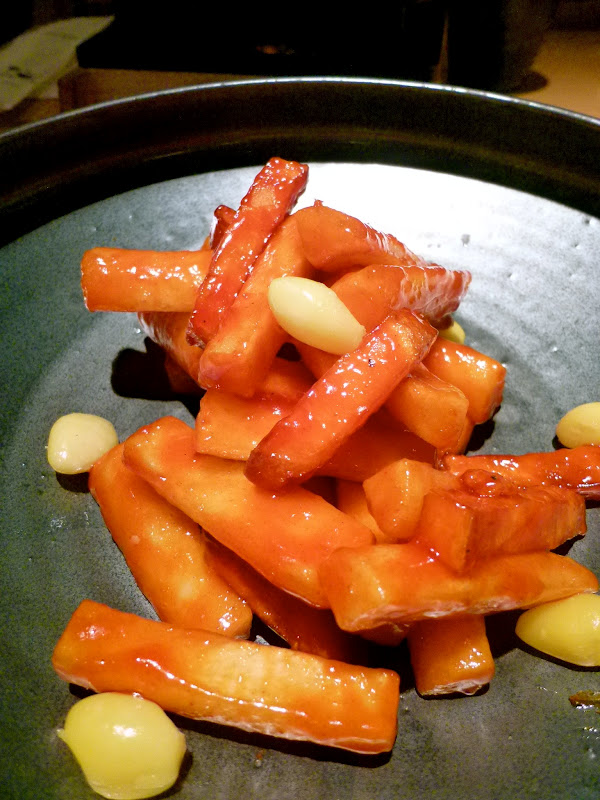 Pan-fried rice cake and yam tossed in sweet and spicy Kohot sauce
