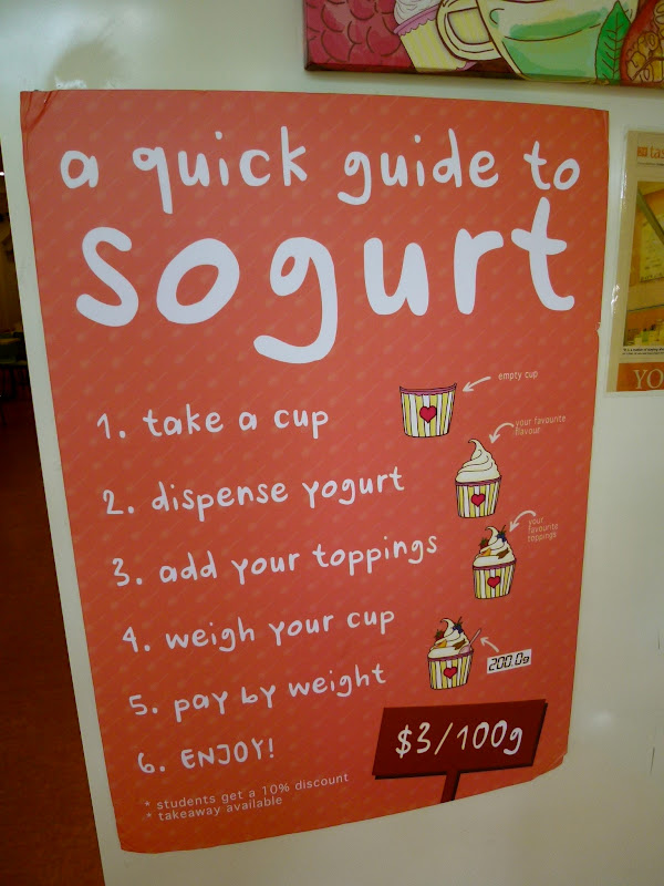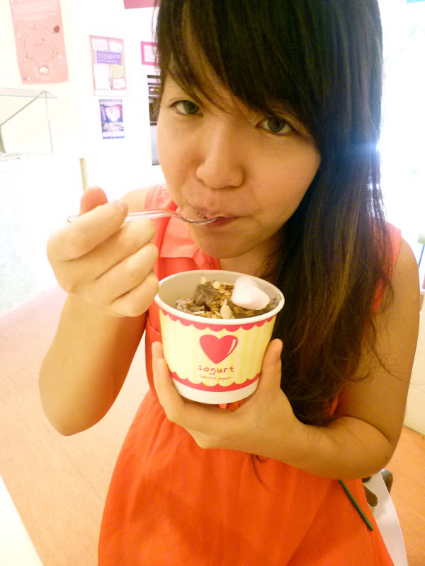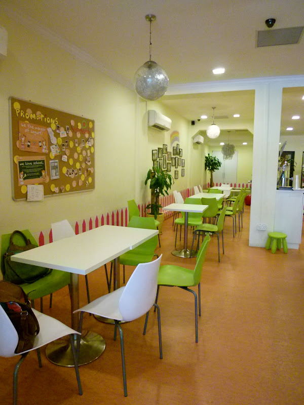Choupinette is a tiny cafe and with tables pretty close to each other, it’s quite difficult to hold conversations with friends or your other dining partners at the table. Besides, it’s packed on a Saturday late morning/early afternoon so Esther and I decided we should head somewhere else for desserts. About a couple of stores down from Choupinette, just beside a German supermarket, we found this brightly-lit and cheery place that serves frozen yoghurt. That’s it! We thought. We will settle here for our desserts.