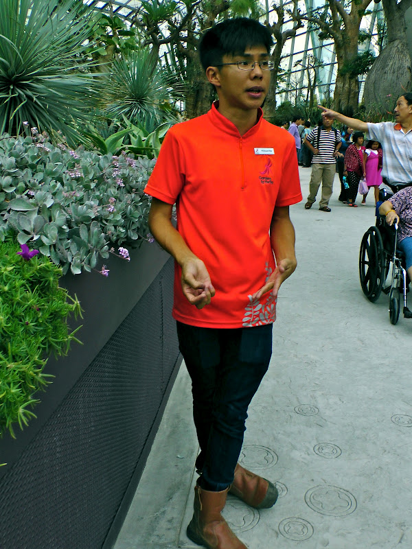 At the flower dome, one of the main attractions in Gardens by the Bay, we were really to have a horticulturist as our guide. When you are there, look out for this men in orange Polo-tee because he helps in the landscaping and maintenance of the plants in the Flower Dome. Though he didn’t have a degree in botany, he practically knows everything about plants and gardening. This guy, who is so well-equipped with the knowledge of plants, prefers to interact with plants than with kids.