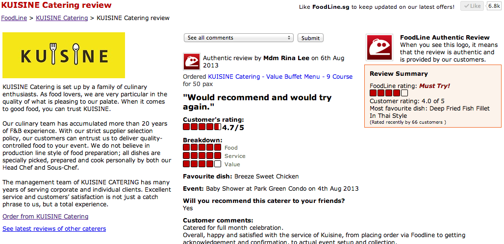 And if you are satisfied with the food caterer, don’t forget to pass on the goodwill by writing a review on Foodline to help others decide which caterer to choose for their events or parties. Your good deeds and contributions will not be overlooked as Foodline will be rewarding you with cash! Read more about Foodline Cash rewards here.