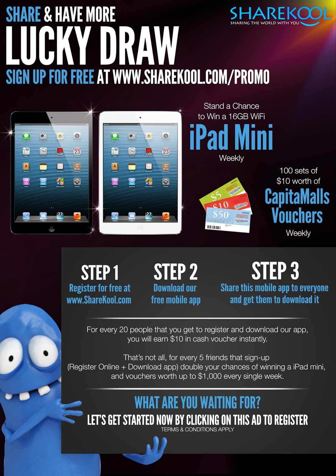 Here’s your chance to win an iPad Mini in 10 weekly lucky draws! Just simply follow these 3 easy steps: