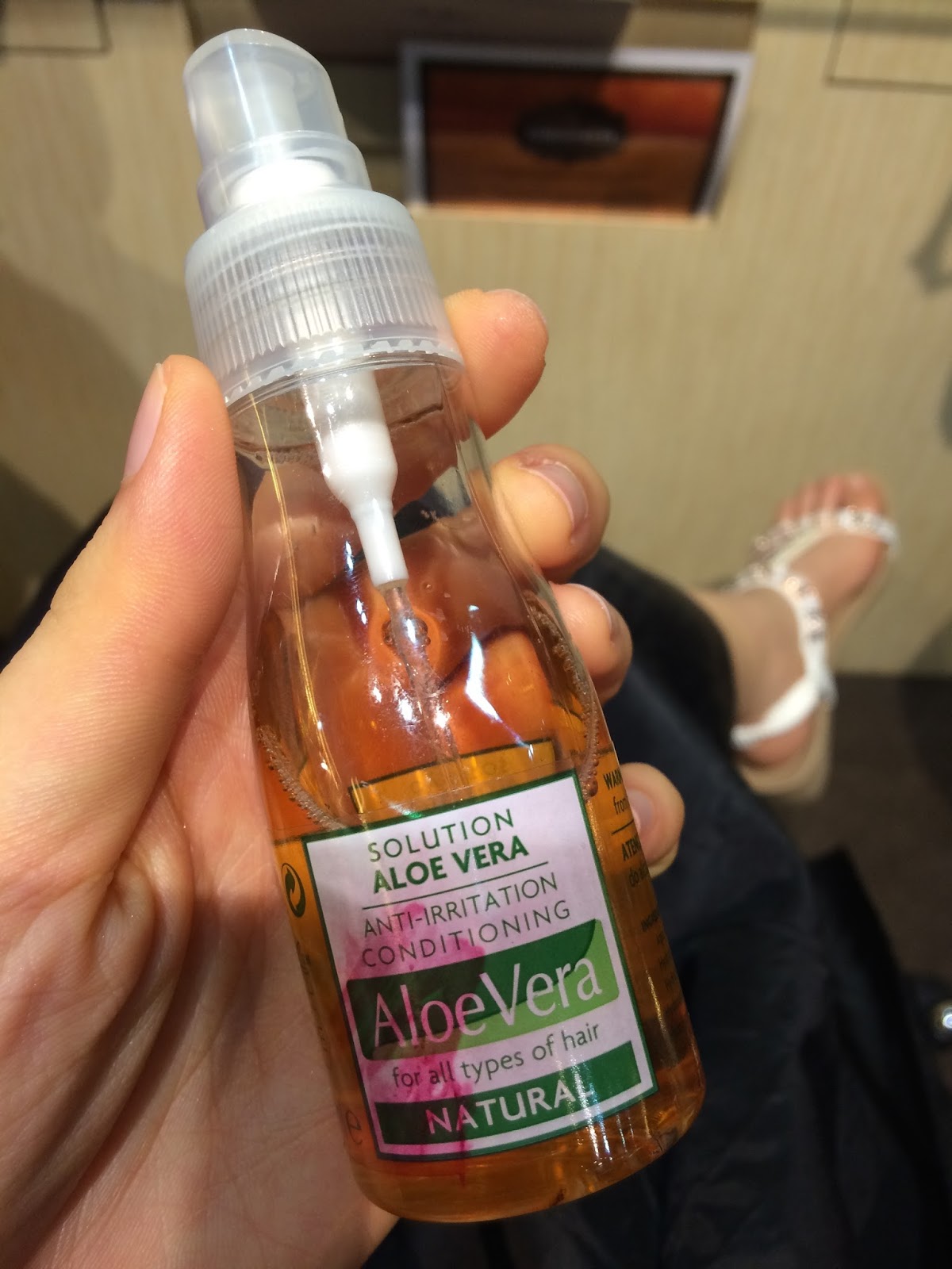 The organic hair coloring process differs slightly from the typical hair coloring process. My scalp was layered with Aloe Vera spray which will protect my scalp and at the same time conditioning it.