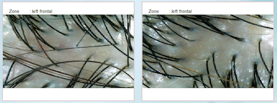 From the scan, you can see that the pores are all closed up, leaving little room for hair growth. As a result, my new hair strands often looks very thin and fine.