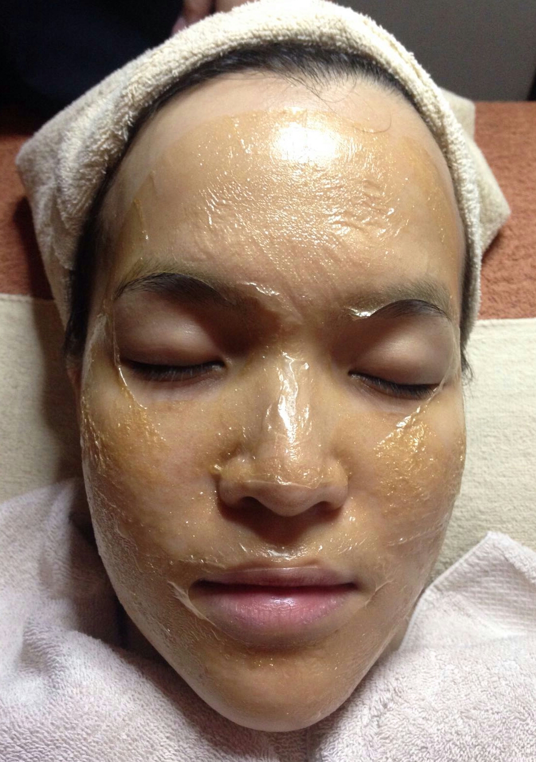 The therapists apply it all over my face til the serum is absorbed before placing the Golden Spider Web Transformation Mask which increases the moisture content in the skin and provides a skin firming and lifting effect.