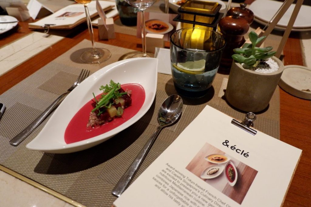 We caught up award-winning Tokyo-based French guest Chef Olivier Rodriguez at The Knolls where he presented us a healthy Mediterranean fare of signatures featuring Japanese rice with fresh fruits and vegetable sauces. Finally, we’ve met a chef who whips up healthy dishes jsut to excite our taste buds. Capella Singapore is a perfect location to introduce his well-loved signatures where you can enjoy some healthy and clean cuisine, peacefully. I love the lush greenery that surrounds Capella Singapore. Its tranquillity simply puts you at ease. It’s like going on a retreat within home, away from the hustle and bustle. This dinner menu is part of the healthful campaign initiated by Capella Singapore that caters to health-conscious individuals. Yoga retreats and healthier menus are just some of the wellness initiatives that this island resort is adopting. Food, after all, should be tasty and nourishing for the body. It should leave us feeling energised, satisfied and inspired.