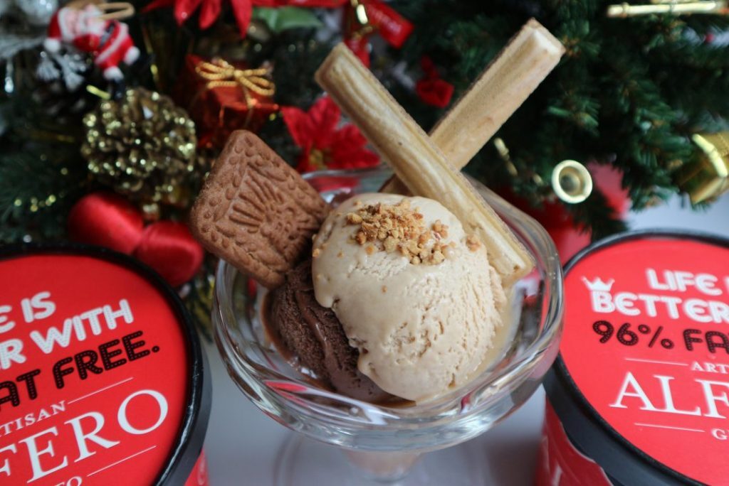 This Christmas, Alfero Gelato has created two Christmas sorbets – Dark Chocolate and Hazelnut which had my mind blown. I’ve always thought that sorbets are made with fruits and sweetened water. They often have that icy-like texture. It has never crossed my mind that ingredients like chocolate and hazelnut could also be used to make sorbets. Without milk and eggs, how is it possible that to make sorbets that look no different from ice cream?