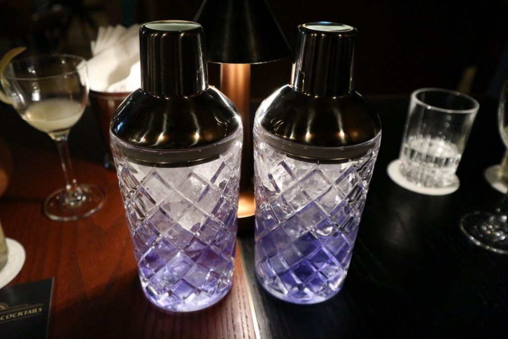 The Lear Black comes with a glass of lemon juice and a large glass cocktail shaker, with the rest of the concoction in it. The bluish tint in the cocktail is due to the presence of butterfly pea flower essence.
