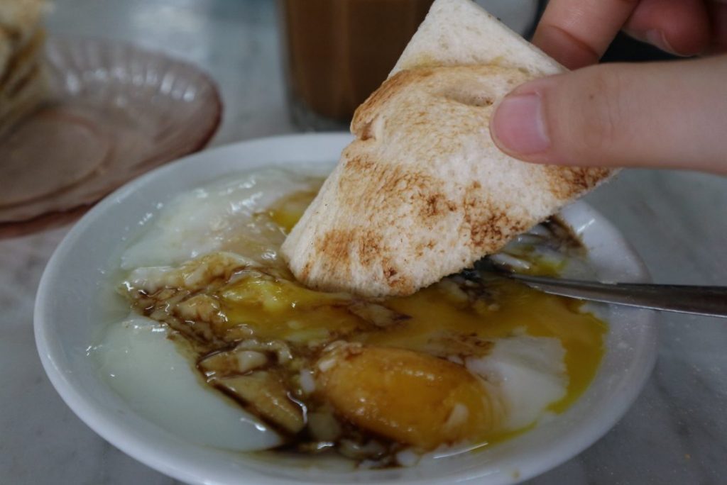Use the soft-boiled eggs as a dip for the kaya toast.