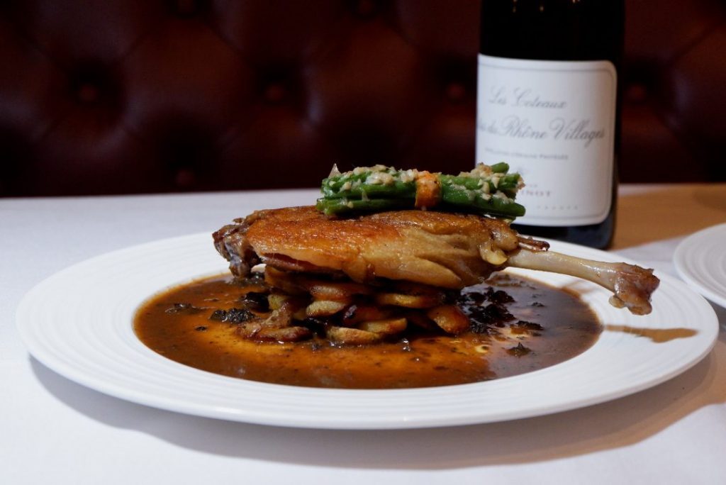 Duck Confit, Morel Mushroom sauce, Green Beans and Sarladaise Potatoes