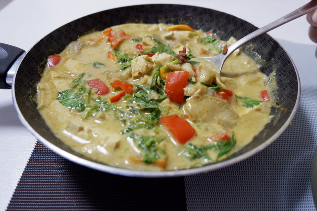 This is a vegan or vegetarian version of Thai Green curry as I did not add any meat or dairy products in it. Instead of eating meat, I’ve been eating either tofu or eggs for protein. It’s easier to cook and prepare.