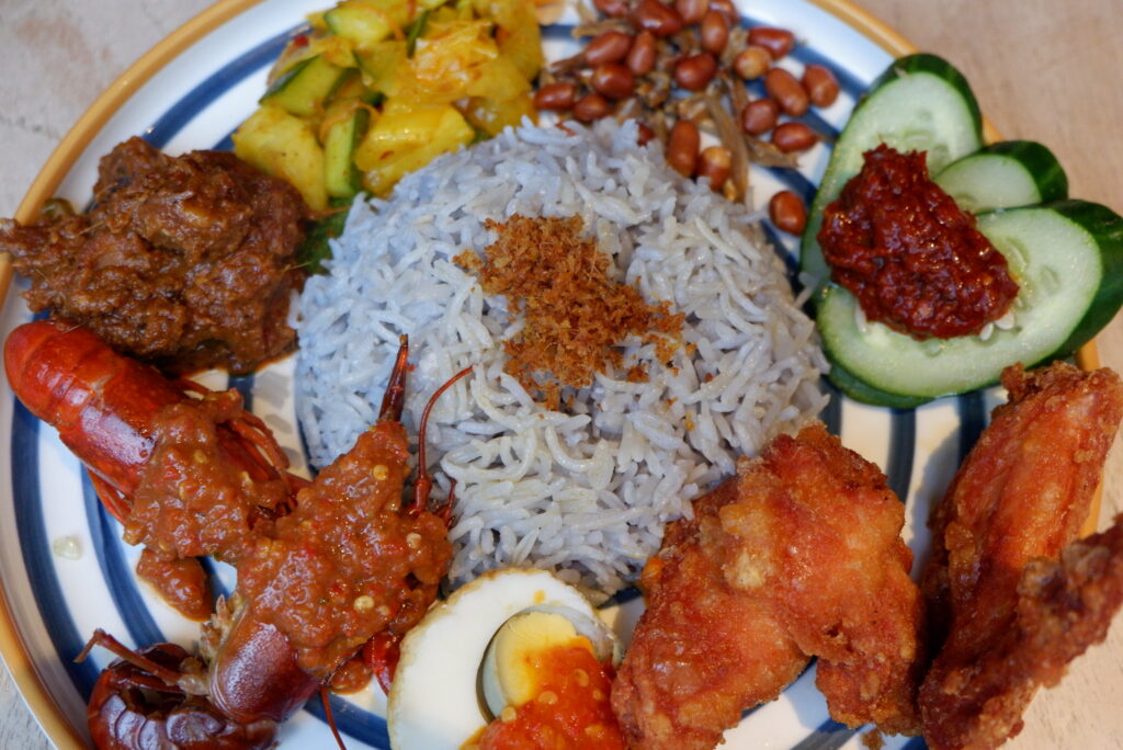 The butterfly pea-infused coconut rice is fragrant and well-cooked. All the side dishes like fried chicken and beef rendang are also delicious. Their sambal which is served at the side along with the cucumber has a good spicy kick to it. The Balado-spiced egg drenched with sambal truly elevates the dish.