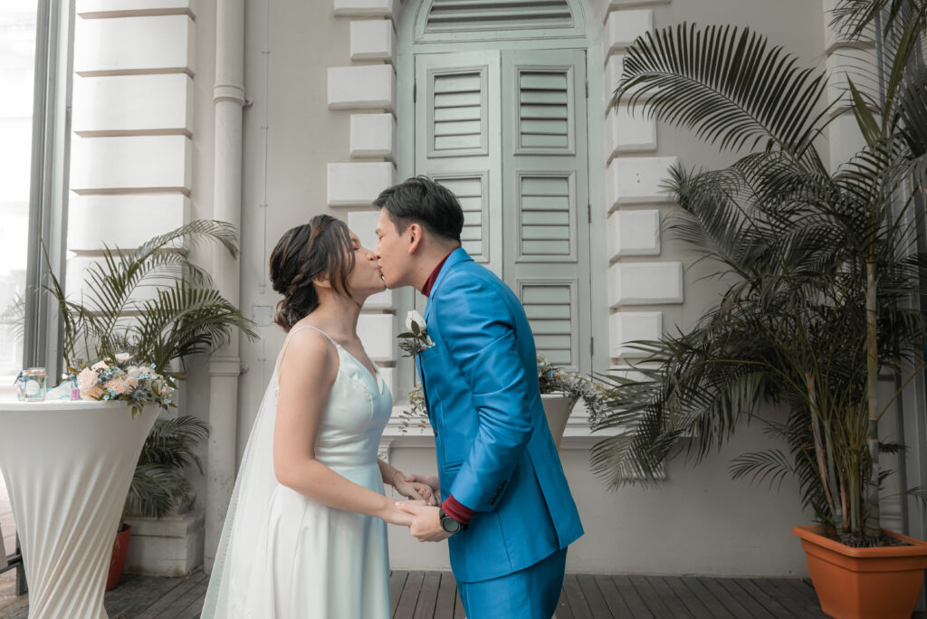 The solemnisation is quite a nerve-wrecking experience for me. Even though we had a rehearsal way before the actual day, I still did not know what to expect. In addition, the whole ceremony was live-streamed so even though we only had 18 guests that day but there are over 100 people online watching us live.