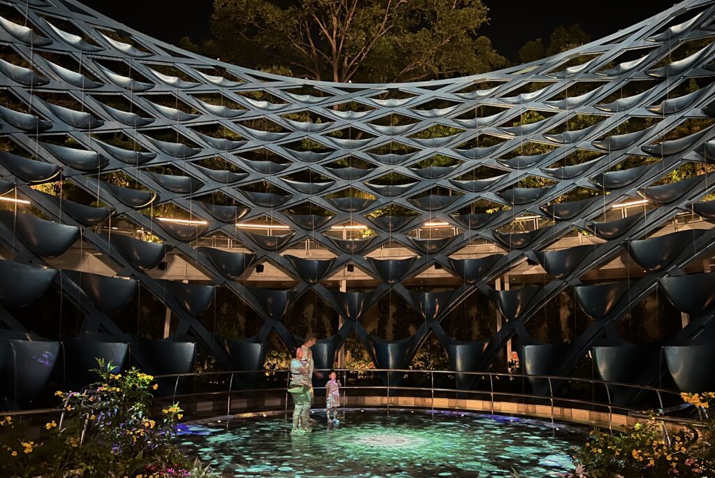 At the Tactile Trellis, you can sit down to take a break while touching various tactile plants – such as the Chinese Wormwood, Asparagus plant and the Juniperus there. During ImagiNite, you can also catch beautiful light projections on the petal-like granolithic vessel, sparking your sense of imagination.