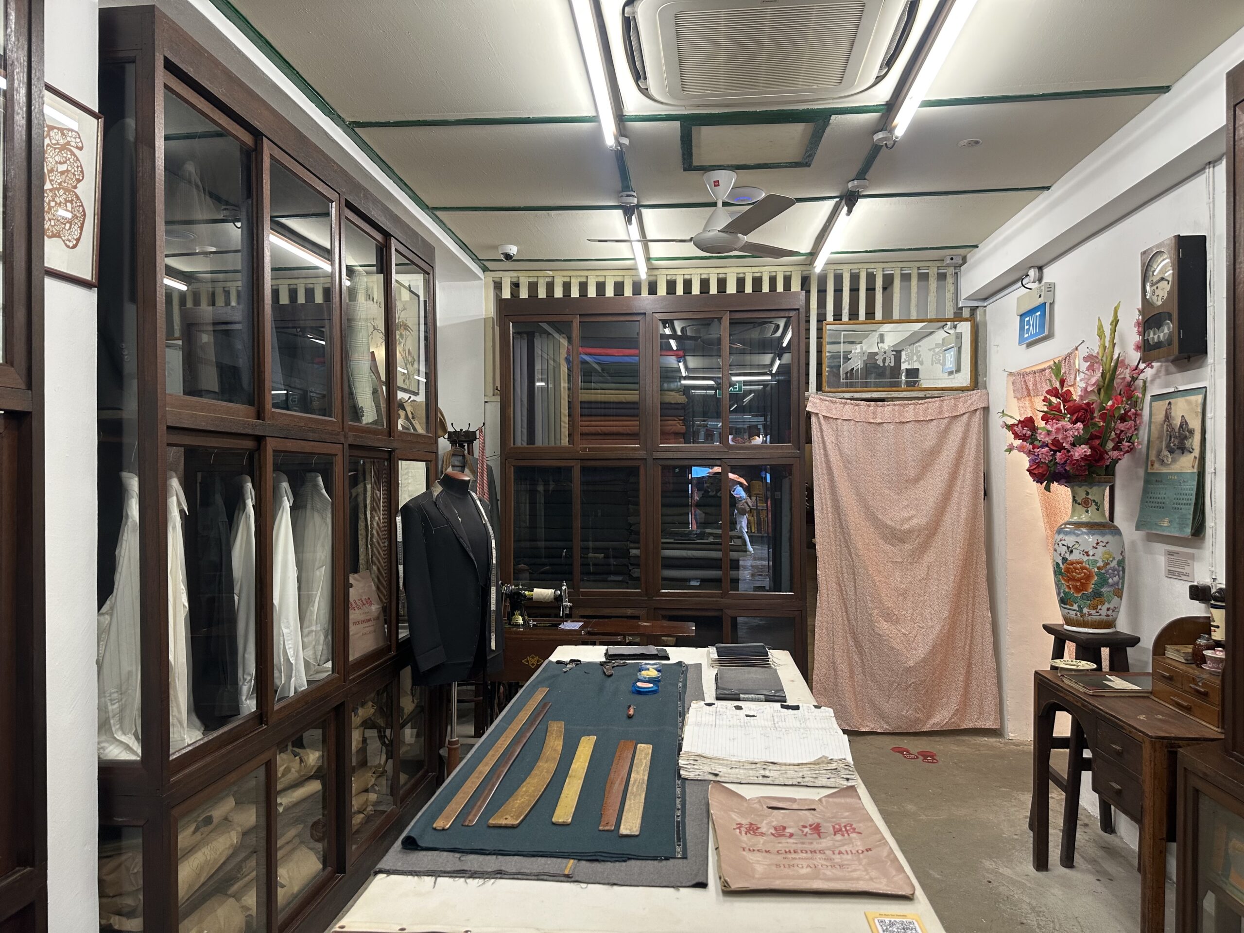 Upon entering the first room, you will feel as if taken back to an unrecognisable point in history. Surrounded by closets filled with tailored suits, an order book, a small vintage sewing machine at the corner of the room, and miscellaneous sewing items scattered across the space. While observing these items, you can also touch and flip through the loose items such as the customer order notebook and sewing tools.