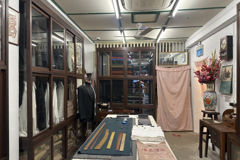 Upon entering the first room, you will feel as if taken back to an unrecognisable point in history. Surrounded by closets filled with tailored suits, an order book, a small vintage sewing machine at the corner of the room, and miscellaneous sewing items scattered across the space. While observing these items, you can also touch and flip through the loose items such as the customer order notebook and sewing tools.